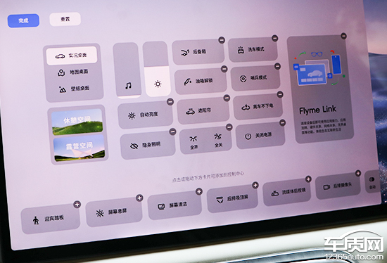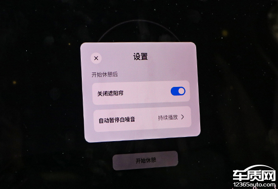 车机系统内置了丰富的情景模式,包括休憩空间、露营空间以及宠物模式等。其中,休憩空间主要是以调节车内环境为主,可以联动关闭遮阳帘以播放白噪音,这些内容都可以在设置界面内进行调整。