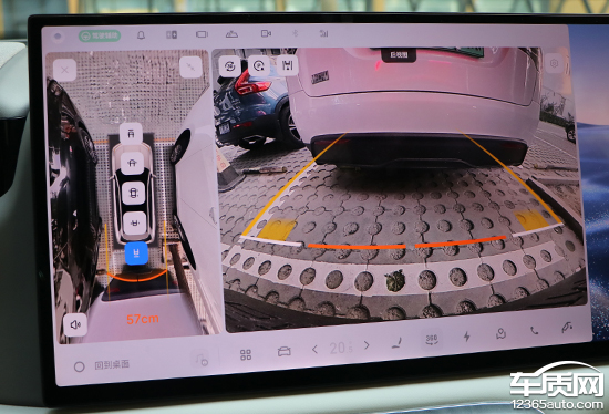评测车配备360°全景影像、车侧盲区影像以及透明底盘/540°影像,支持多角度显示。实测影像画面的综合素质较高,不仅清晰明亮,而且对于畸变的控制也能够令人满意。此外,距离提示以及随动倒车辅助线也都是非常实用的小功能,可以为驾驶员提供参考。